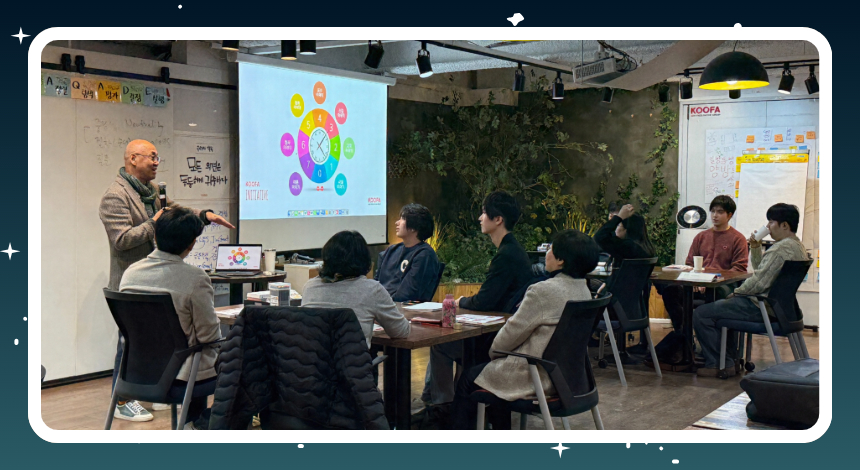 안녕하세요 여러분~! 설 연휴는 잘 보내셨나요? 연휴 이후라 그런지 모두 한층 더 밝은 에너지로 모인 KOOFA 대표 공개교육, 이니셔티브 237기의 현장을 공유합니다! 특히 유난히 환한 표정의 쿠가 눈에 띄는데요, 연휴 동안 아주아주 먼~ 곳을 다녀왔다고 합니다. 🤣 어떤 이야기가 있었는지 궁금하시다면, 직접 물어보셔도 좋겠습니다!